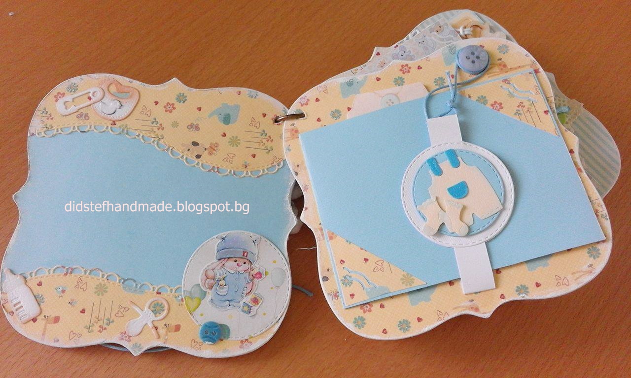 Аз реших да ви представя едно мини бебешко албумче за момченце.Признавам ,че доста ме позатрудни -не че има нещо сложно, а защото просто ми липсваха пеперудите и цветята.Наблегнах на копченцата и дрешките. Дали съм се справила ще кажете вие.
